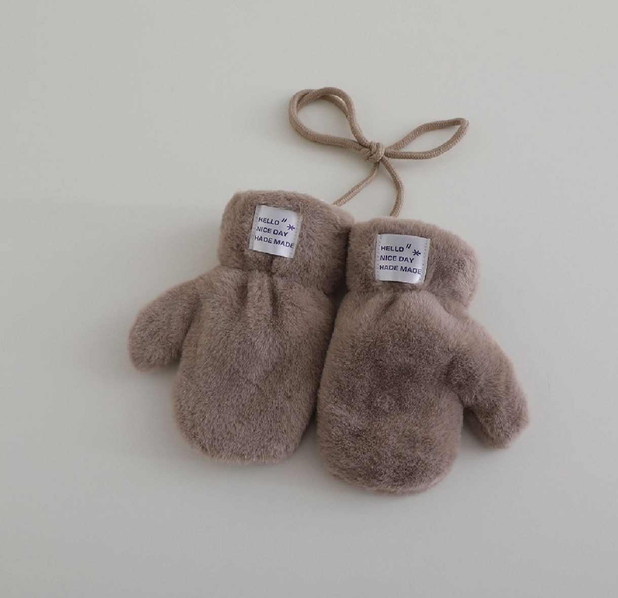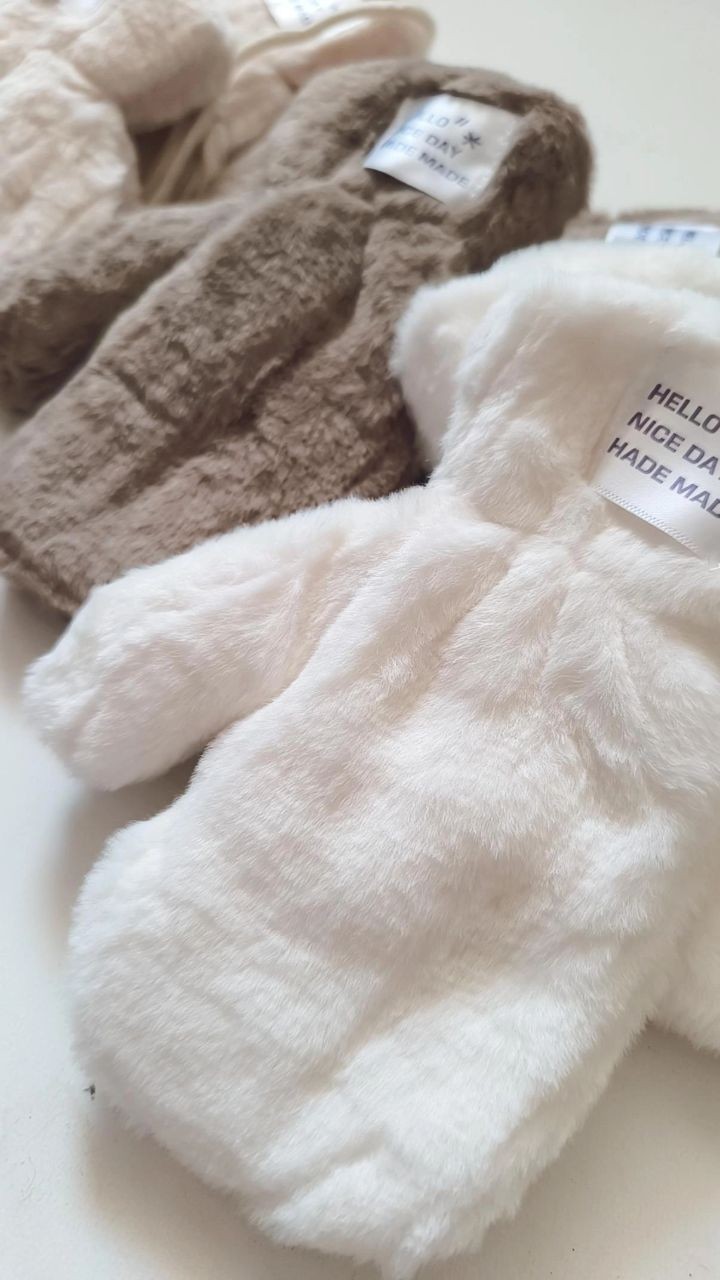 دستکش تک انگشتی بند دار داخل ببعی نرم و راحت و گرم رده سنی یکسال و نیم تا پنج شش سال مناسب وارداتی در سه رنگ سفید کرم نسکافه ایارتفاع دستکش 18دور مچ قسمت کشبافت 8سانت قابل تنگ و گشاد شدن
