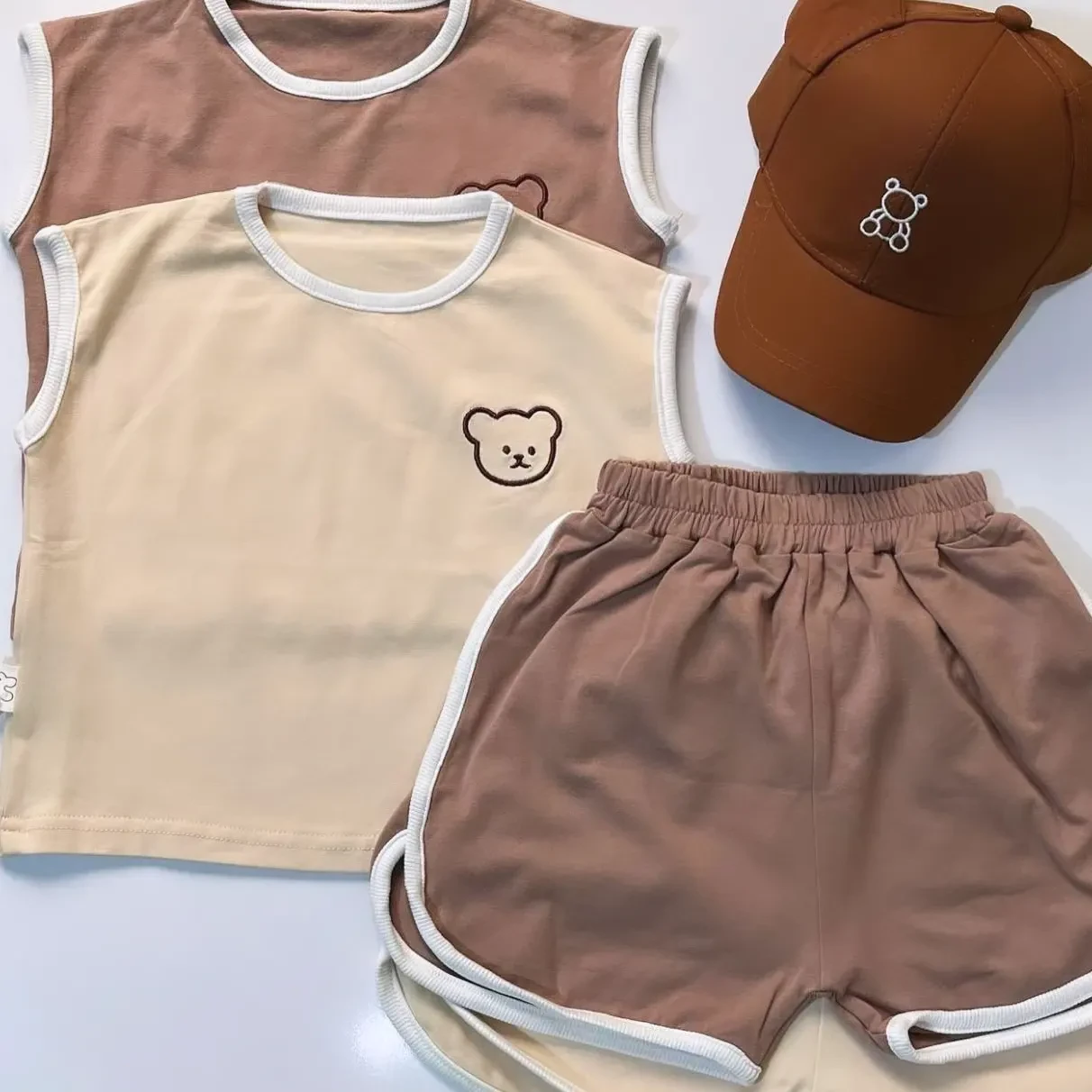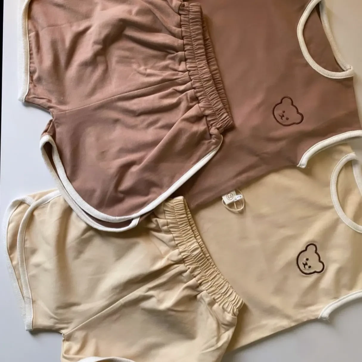 تاپ شورتک تدیوارداتیجنس نخ پنبه کیفیت عااالیرنگبندی شیری و نسکافه ایتاپ شورتک هم رنگ و ست هستناسپرت 👫حدودا مناسب 3ماه تا 1.5 سال