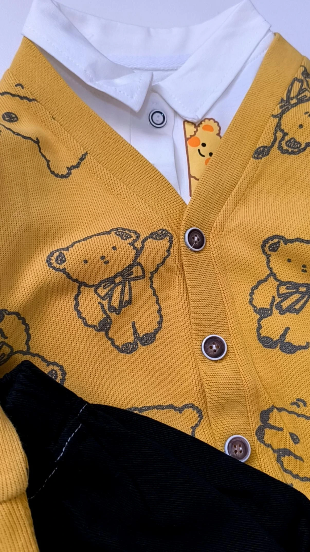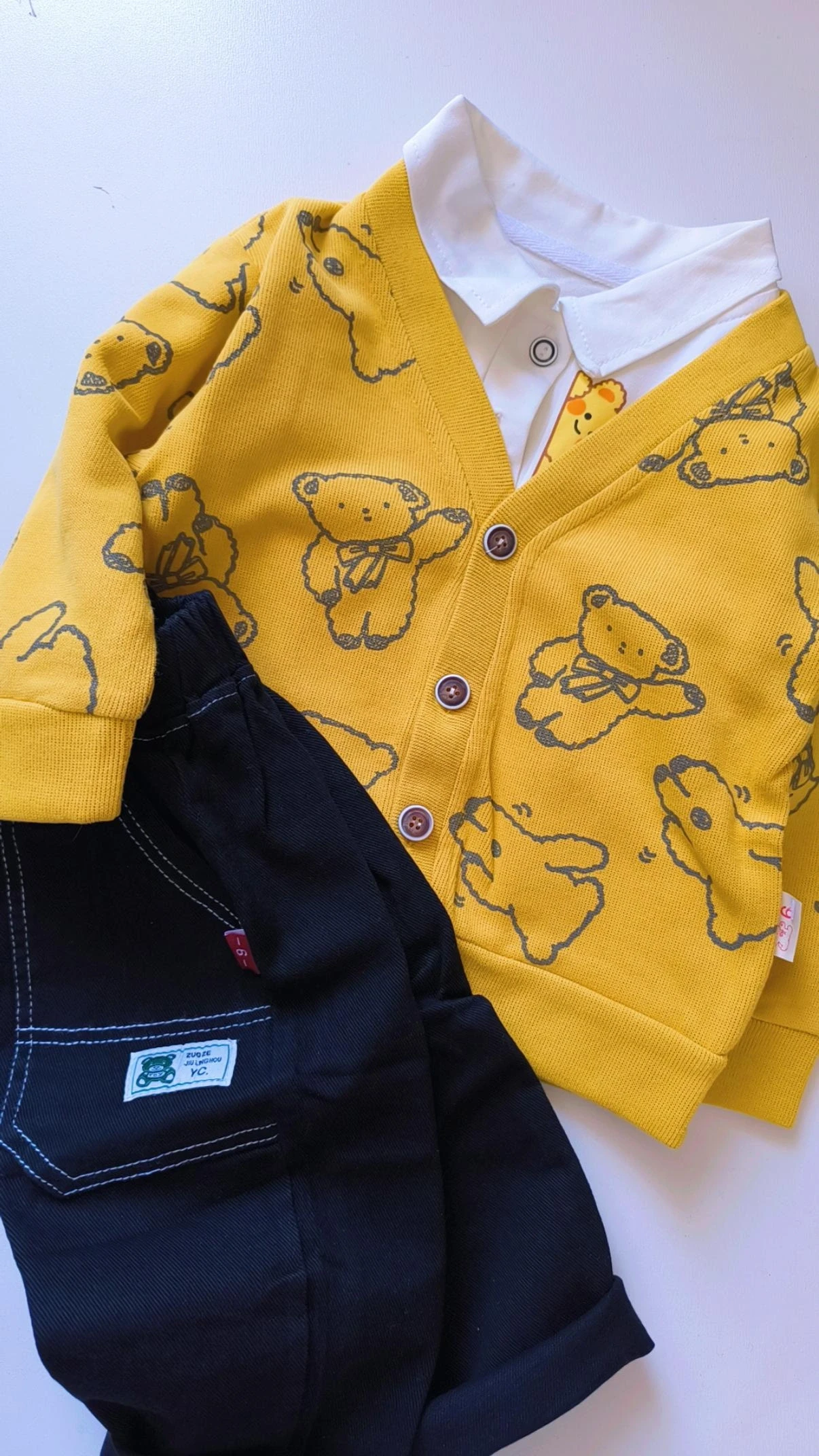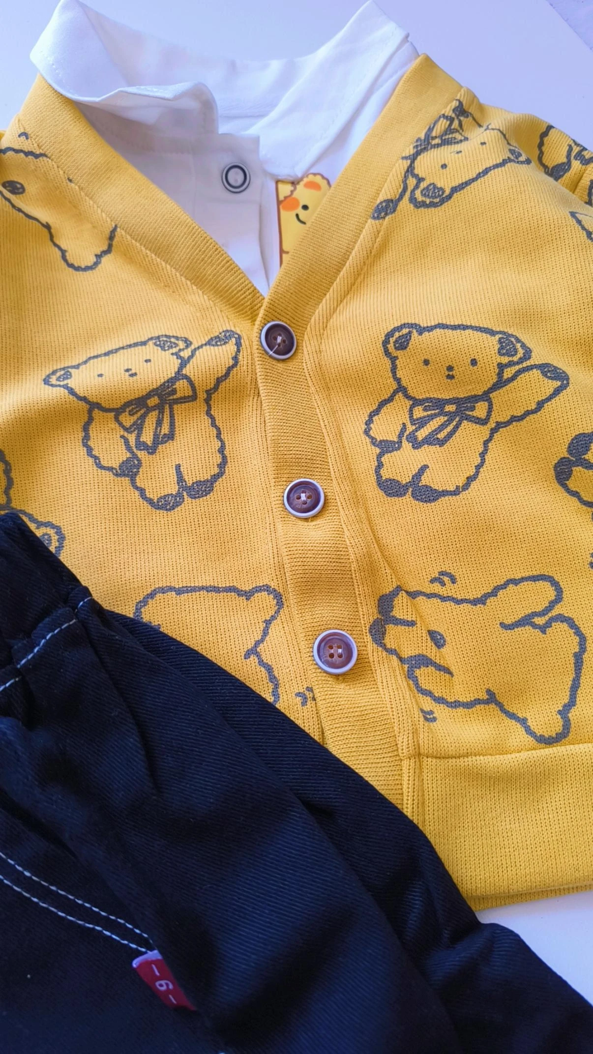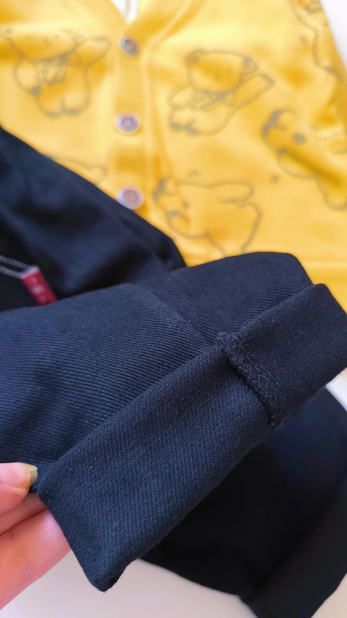 جنس بلوز زیر سوپر نخ پنبه یقه دار دو دکمه و کت کبریتی و شلوار جین اصلی کشسانی داره