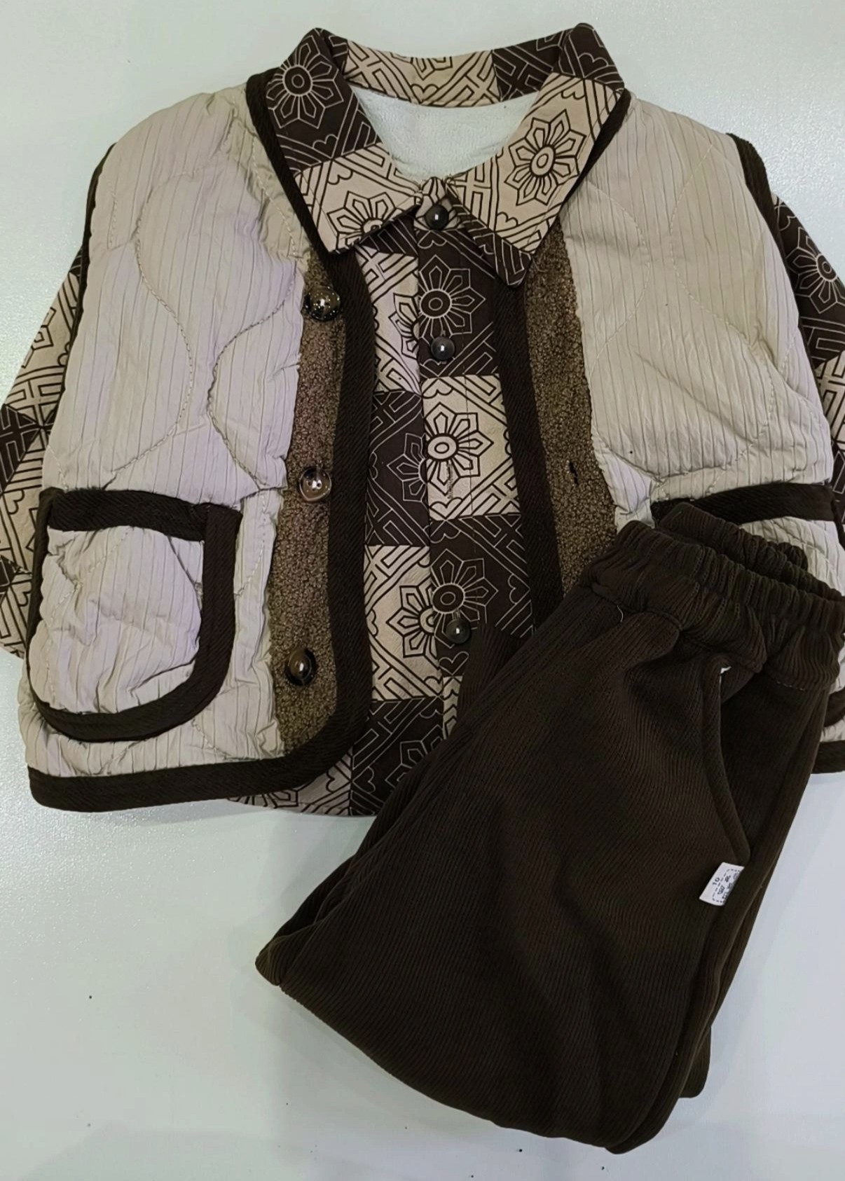 جنس بلوز کتان ضخیم نرم و لطیف داخل لاینر دار مخملی و جلیقه داخل پشمی و شلوار کبریتی گرم بالا داخل لاینر دار