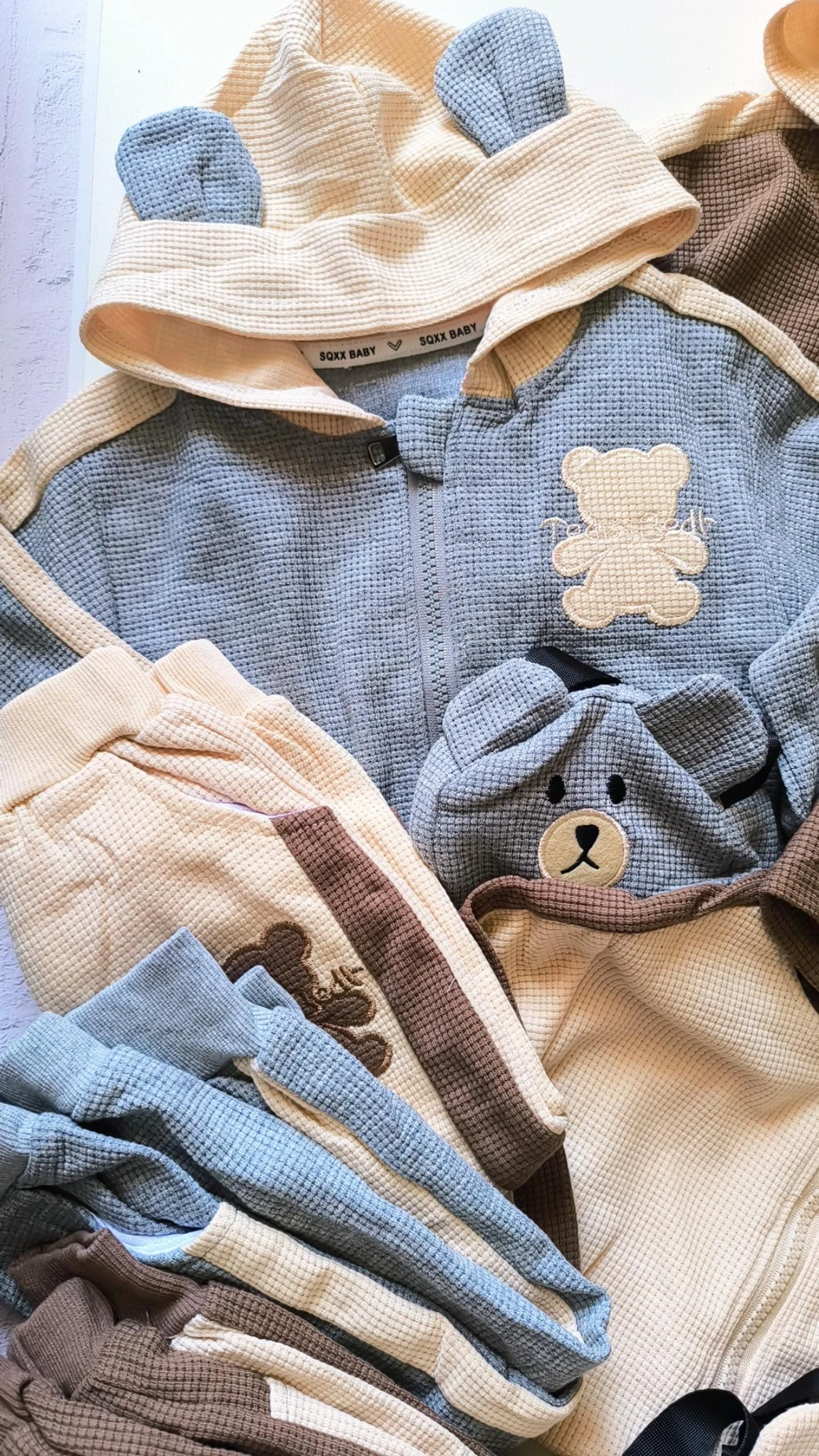 ست سه تیکه سویشرت و شلوار و کیف بیسکویتی با کیفیت عالی و جنس وارداتی آمادهست.و مناسب دختر و پسر